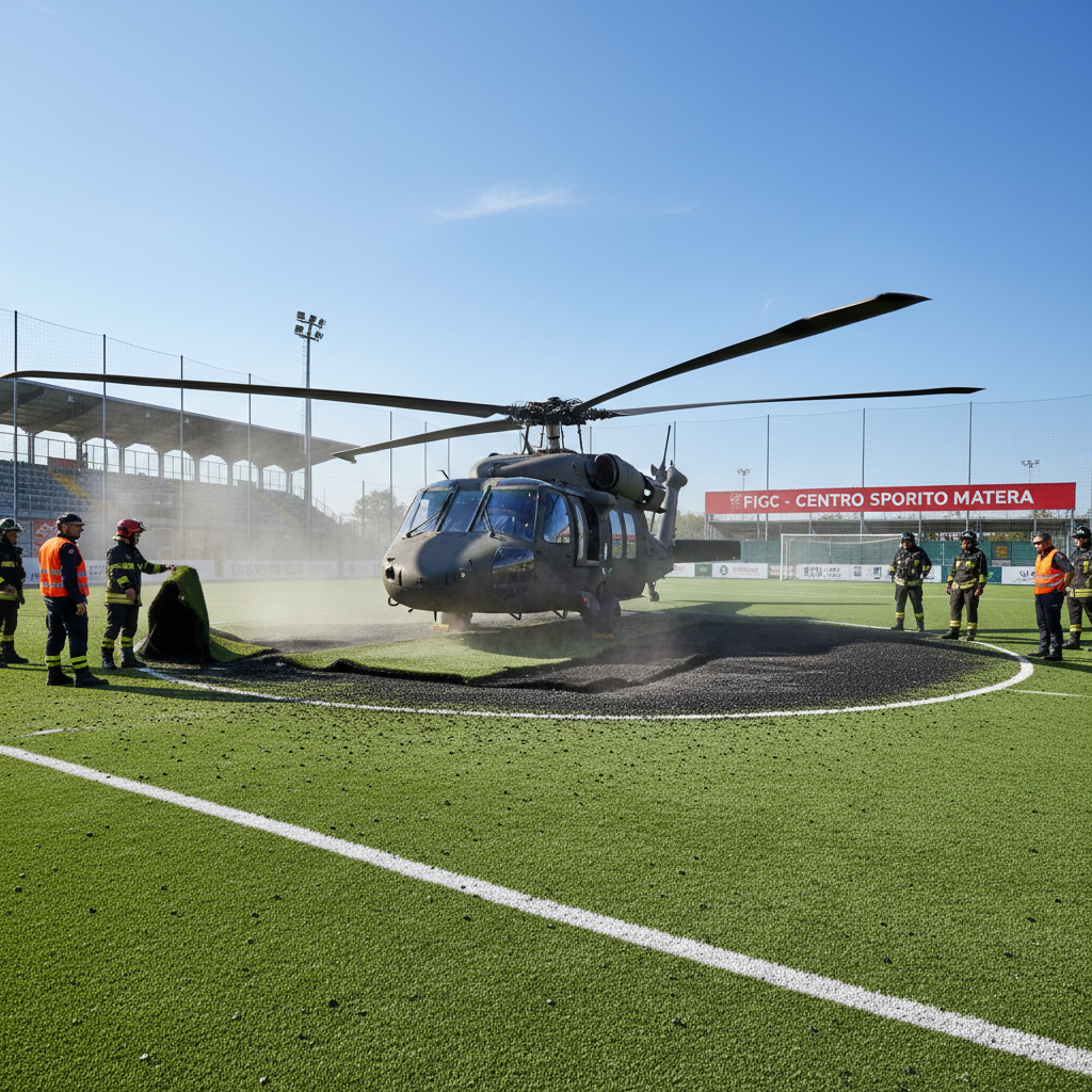 Elicottero atterra a Potenza: danni al campo da calcio in erba sintetica e chiusura della struttura Figc Marzo 4, 2026