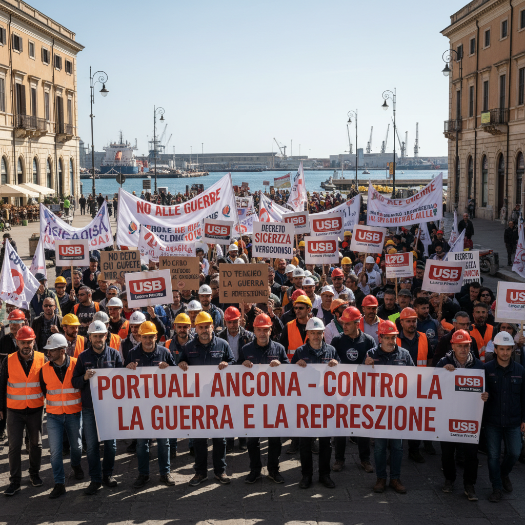 Un messaggio chiaro è emerso da Ancona, dove si è svolta una manifestazione caratterizzata da striscioni e fumogeni rossi, participanoti allo sciopero internazionale dei porti indetto dall’Unione sindacale di base (Usb) e dall’Unione portuali autonomi dorici (Upad). Il tema centrale è stato “I portuali non lavorano per le guerre”, un richiamo forte alla necessità di rimanere uniti contro le conseguenze disastrose dell’economia di guerra.